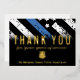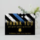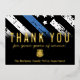 Este diseño incluye una bandera de la fuerza policial con rayas blancas y negras, y una delgada franja azul. Esta tarjeta de agradecimiento es excelente para mostrar agradecimiento a un oficial que celebra un aniversario o agradecer a un oficial de policía, sheriff, capitán o jefe que se retira por sus años de servicio.