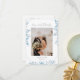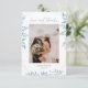 Esta moderna tarjeta de agradecimiento de boda plano cuenta con un elegante borde geométrico, polvorientas hojas de eucalipto azul y una fuente romántica de escritura. Reemplace la foto de la parte delantera por una de su boda. Agregue su propio mensaje o elimine el texto para que pueda escribir a mano su mensaje en la parte posterior. Consulte otros elementos de la colección "Blue Eucalyptus".