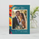 Muestra tu gratitud con esta impresionante tarjeta de agradecimiento Verde azulada del Boda Floral Border, que incluye obras de arte florales audaces y tu foto enmarcada por un brillante borde dorado. Combinando el encanto clásico con el refinamiento moderno, este elegante diseño floral es la manera perfecta de agradecer a los que han ayudado a hacer de su día algo especial.