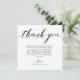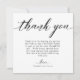 Clásico Script Calligraphy Wedding Invitation Suite GRACIAS tarjeta. Blanco y negro. La imagen de fondo puede eliminarse o cambiarse bajo la opción "personalizar más adelante". Minimalista, moderno y elegante. Parte de la colección Daniella. Tarjeta cuadrada.