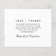 Expresar su gratitud a los amigos y familiares que celebraron con usted en su día especial con este boda moderno nota de agradecimiento. **POR FAVOR LEA ANTES DE COMPRAR** Nuestra pequeña gama de artículos de papelería de presupuesto mide 4,5" x 5,6" y se ajusta dentro de un sobre A6, que están disponibles en todo tipo de colores en su tienda de papelería local o usted puede añadir uno blanco a su pedido antes de realizar el pago. El material de cartón es blanco brillante con un acabado semi-brillante y peso de 110 libras, lo cual es adecuado para invitaciones. NO le aconsejamos que elija la opción de papel satinado ya que es un papel mucho más delgado de 80lb, que es más parecido a las páginas de revista que a las de cartón. Si prefiere una invitación clásica de tamaño 5x7 impresa en un material de 120lb con acabado mate, puede transferir este diseño a una tarjeta plana utilizando las opciones de diseño de transferencia. Las tarjetas planas no están dentro del rango de presupuesto, pero usted tiene una mayor variedad de tamaños y opciones de cartón y se envían con sobres. La forma y el tamaño más adecuados para el diseño aparecerán en las opciones de transferencia de diseño. Si realiza cambios en la forma o el tamaño o elige otro producto y el diseño está recortado de alguna manera o no aparece directamente en la página, necesitará usar el servicio de diseño activo para que alguien ajuste el diseño por usted, a menos que se sienta cómodo haciéndolo por usted mismo. No hay ninguna comprobación o intervención manual entre la colocación del pedido y la impresión, por lo que lo que ve en la pantalla es lo que se imprimirá y se le enviará. Con esto en mente, por favor, compruebe tres veces si hay algún error ortográfico o información incorrecta antes de realizar el pedido. La fotografía del modelo tiene fines ilustrativos y puede cambiarse a una de las suyas.