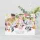 Este collage de fotos gracias tiene un tema de otoño y es perfecto para bodas de otoño. La tarjeta de agradecimiento boda incluye un bonito ramo de flores de acuarela y tres de sus fotos bodas favoritas. La parte posterior de la tarjeta es editable: se muestra un color de fondo burdeos, pero se puede cambiar al color elegido, o se pueden agregar fotos adicionales.