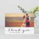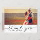 Boda De Fotos Con Escritura A Mano Gracias Tarjeta. Diseño de Elke Clarke © Visite nuestra tienda www.zazzle.com/monogramgallery* para más colores y estilos. Agrega tu propia foto y texto. Una simple tipografía negra de moda se apodera de un fondo blanco con las palabras "Gracias". Reemplace las fotos de ejemplo por las suyas.