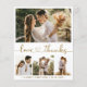 Presupuesto, Elegante, Moderno, Elegante Boda de guión de letra del corazón 4 Collage de fotos Asequible Tarjeta de agradecimiento en oro y blanco. Plantilla de tarjeta boda elegante y minimalista con cuatro (4) collage de fotos en la parte delantera y una (1) foto en el reverso. "Amor y agradecimiento" texto en una caligrafía con letras a mano tierno guión tierno del corazón con cola de abrupto. Personaliza con tu nombre y mensaje de agradecimiento. Si necesita ayuda o un elemento que coincida, póngase en contacto con el diseñador.
