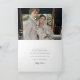 Elegante 5x7" boda tarjetas de agradecimiento cuentan con una única foto boda horizontal o orientada al paisaje con "Gracias" colocada en la parte inferior en el guión de la caligrafía blanca de moda. Personalice con sus nombres y fecha de boda en letras de bloques clásicas. Añade un mensaje personal y una firma al interior, junto con una foto adicional. Disponible de forma profesional o como descarga digital para impresión local,