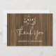 Boda de Monograma de Madera Rústica Tarjeta de agradecimiento Esta elegante carta de agradecimiento incluye una corona blanca y dorada sobre un fondo rústico de madera con letras blancas. Una manera elegante, moderna y moda de agradecer a sus invitados por celebrar su evento especial con usted.