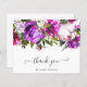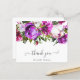 Floral budget Boda Gracias Tarjeta con peonías en violeta y audaz púrpura, fuschia y violeta junto con "gracias" en un guión caprichoso con toques. Estos elegantes tonos de joyas Bodas Gracias Las tarjetas en tonos violetas son excelentes para un boda de verano.