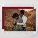 Elegante tarjeta de agradecimiento de bodas con tu foto boda horizontal de sangre completa con "Gracias" en letras de Relieve metalizado dorado. Personalice la tarjeta de agradecimiento de fotos moderna con su nombre. En la parte posterior de la tarjeta de agradecimiento del boda de Relieve metalizado dorado se muestra el mensaje de su personalizado con letras blancas con un fondo burdeos sólido.