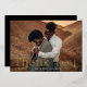 Elegante tarjeta de agradecimiento de bodas con tu foto boda horizontal de sangre completa con "Gracias" en letras de Relieve metalizado dorado. Personalice la tarjeta de agradecimiento de fotos moderna con su nombre. La parte posterior de la tarjeta de agradecimiento del boda de Relieve metalizado dorado muestra su mensaje personalizado con letras blancas con un fondo negro sólido.