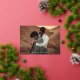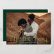 Elegante tarjeta de agradecimiento de bodas con tu foto boda horizontal de sangre completa con "Gracias" en letras de Relieve metalizado dorado. Personalice la tarjeta de agradecimiento de fotos moderna con su nombre. En la parte posterior de la tarjeta de agradecimiento del boda de Relieve metalizado dorado se muestra el mensaje de su personalizado con letras blancas con un fondo verde de cazador sólido.