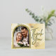 Esta acuarela color amarillo y azul suave de la mantequilla muy pálido es un tema romántico y elegante para los suministros fijos y fiestas de tu boda. Las flores de color amarillo acuático son suaves y elegantes. Este Relieve metalizado de oro gracias tiene espacio para sus nombres, su propio mensaje de agradecimiento y una foto de la pareja de bodas. La tarjeta de agradecimiento forma parte de una gama de accesorios de boda y fiesta para facilitar la preparación de su boda