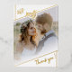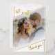 Un boda de fotos blanco y negro sencillo y elegante, gracias a su tarjeta con Relieve metalizado de oro real y diseño romántico para agradecer a sus invitados por ser parte de su día especial. Personalice la tarjeta agregando un mensaje a su familia y amigos, nombres de novias y novios, iniciales e imágenes favoritas.