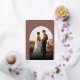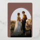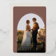 Las elegantes tarjetas de agradecimiento nupcial incluyen una única foto boda vertical o orientada a retratos en un diseño único de arcos. "Con amor y gratitud" está cubierto de letras de Relieve metalizado dorado, con sus nombres curvados a un lado. Añade un mensaje personal y una firma en la parte posterior, junto con una foto adicional.