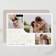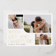 Elegante tarjeta de agradecimiento nupcial con un trío de fotos bodas en formas orgánicas redondeadas para un moderno estilo boho. "Con amor y gratitud" aparece en la esquina inferior izquierda con letras de Relieve metalizado dorado, con sus nombres debajo. Añadir un mensaje personal y una firma al reverso.