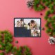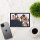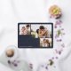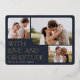 Elegante tarjeta de agradecimiento nupcial con un trío de fotos bodas en formas orgánicas redondeadas para un moderno estilo boho. "Con amor y gratitud" aparece en la esquina inferior izquierda en el rosa de Relieve metalizado dorado con letras en serif, con sus nombres debajo. Añadir un mensaje personal y una firma al reverso.
