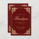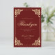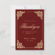 Tarjeta de agradecimiento al Boda Islámico Musulmán a la gente que asistió a la ceremonia Nikah de la pareja. Diseño de marco de borde de desplazamiento vintage en color de oro falso sobre un fondo rojo burdeos. Los nombres, la fecha y toda la información se pueden cambiar usando el botón "Personalizar" del lado derecho. Se incluye una tarjeta adicional para que pueda añadir texto.