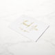 Moderno boda gracias postal que presenta un diseño sencillo con "Gracias" en una elegante tipografía de escritura y sus nombres y fecha boda en un minimalista sans serif. Todo el texto del frente está en Relieve metalizado oro real. Estas tarjetas postales de agradecimiento a la moda son geniales para cualquier estilo de boda.