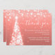 Elegante y festivo Rosa de oro de árbol de navidad Boda de oro "Gracias" plantilla de tarjeta, que incluye texto de agradecimiento, luces purpurinas de árbol de Navidad y escritura moderna de tipografía.