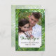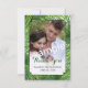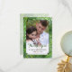 Una elegante carta de agradecimiento para una pequeña boda personalizada, impresa con una foto de su boda y personalizada con sus nombres en escritura verde moderna y la fecha boda. La nota de agradecimiento está decorada con un marco de vegetación tropical y en la parte trasera hay un espacio para un saludo personal escrito a mano.