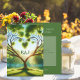 Envíe una tarjeta verde de agradecimiento con sus monogramas. Tarjeta de agradecimiento plana con hermosos árboles con un majestuoso árbol en el centro junto con acentos verdes y cardíacos. La parte trasera tiene espacio para tu mensaje especial junto con tus nombres deseados. Personalizar el texto delantero y el posterior. Utilice la plantilla para crear su propia tarjeta de agradecimiento de boda.