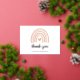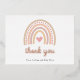 Cute Chica Baby Shower Gracias Tarjeta con un arcoiris boho en colores pastel mudos junto con un corazón rosado en el medio. Debajo está "gracias" en el verdadero Relieve metalizado de oro rosa junto con los nombres de Mamá-a-Ser y Bebé. El reverso tiene tu mensaje personalizado. Esta tarjeta plana personalizado hace que el envío de tus tarjetas de agradecimiento sea rápido y fácil.