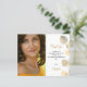 Una tarjeta de agradecimiento moderna y elegante. Un fondo blanco de moda decorado con un follaje eucalipto dorado. Personaliza y agrega tu foto, tu nota de agradecimiento y tu nombre. Fondo blanco.
