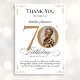 Tarjeta de agradecimiento a los Personalizados de oro. Una tarjeta de agradecimiento especial para la celebración de cumpleaños diseñada de manera elegante, que incluye una foto personalizado de la persona de cumpleaños y caligrafía de escritura con elementos florecientes de época. Lo suficientemente sencillo para adaptarse a una variedad de temas y colores. ¿Necesita ayuda con la plantilla? ¡Simplemente contáctame!