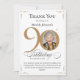 Tarjeta de agradecimiento al Personalizado de oro Foto 90th Birthday. Una tarjeta de agradecimiento especial para la celebración de cumpleaños diseñada de manera elegante, que incluye una foto personalizado de la persona de cumpleaños y caligrafía de escritura con elementos florecientes de época. Lo suficientemente sencillo para adaptarse a una variedad de temas y colores. ¿Necesita ayuda con la plantilla? ¡Simplemente contáctame!