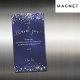 Un fondo azul marino decorado con finos purpurinas plateados, chispas. El color azul es desigual. Guión con letras a mano grande con barras y el texto: Gracias. Personalice y agregue su nota de agradecimiento y nombre.