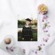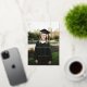 Esta moderna tarjeta de agradecimiento a tu graduación incluye una foto vertical de marco completo, tu texto personalizado con tinta blanca plana y una tipografía de Relieve metalizado de oro elevada "Gracias". El aspecto es moderno y elegante. En el interior hay mucho espacio para tu propio texto personalizado. Simplemente edite la plantilla con su propia información y elija cualquier opción.