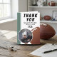 Show your appreciation with this personalized football thank you card! Perfect for coaches, teammates, or special players, this custom card features a vibrant design with a prominent football graphic and a customizable photo. Express gratitude for a memorable season, dedication, and sportsmanship. Easily add your coach's name, team name, year, and a player's photo to make it a truly unique keepsake. An ideal way to say 'thank you' after a great season or game!
