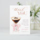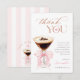 Comparte tu gratitud con esta chic tarjeta de agradecimiento de Amor está preparando. Destacando un diseño de acuarela de martini de espresso con un lazo rosa romántico y letra script atemporal, es la forma perfecta de agradecer a tus invitados después de una acogedora despedida de soltera con tema de café.