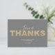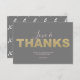 Muestre su aprecio con estas tarjetas de Amor y Agradecimiento, perfectas para bodas o el Día de San Valentín 2025. Con un diseño simple, elegante y minimalista, estas tarjetas presentan una tipografía de guión de moda combinada con una fuente dorada falsa moderna y audaz sobre un fondo gris chic. El reverso destaca un patrón sofisticado de X y O, lo que las convierte en una opción elegante para cualquier ocasión. Coordine su look con el conjunto de papelería correspondiente en www.zazzle.com/dotellabelle.