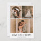 Collage moderno de fotos boda de diseño "Tan agradecido" tarjeta en blanco con texto gris - personalizado con cuatro de tus fotos favoritas del día de la boda y tu mensaje de agradecimiento.