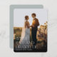 Elegante tarjeta de agradecimiento nupcial con una sola foto boda vertical o orientada a retratos. "Con amor y gratitud" está cubierto de letras en serif adornadas, con sus nombres debajo. Añadir un mensaje personal y una firma al reverso.