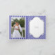 Azul marino, rayas blancas y tarjeta de nota de agradecimiento de boda náutica con ancla. Un diseño de patrón de rayas elegante con rayas diagonales azules marino y blancas, un ancla con un corazón azul y cuerda y su texto en un marco con una pancarta. Su foto está en el interior. Moderno pero con un aspecto vintage en cierto sentido. Puede cambiar el fondo y el color del texto eligiendo entre más de 200 colores del gráfico de colores de Zazzle. Este diseño clásico es una plantilla completamente personalizable y es parte de un conjunto de boda perfecto para una boda de verano.