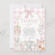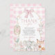 Personaliza esta adorable tarjeta de agradecimiento para fiesta de cumpleaños con tus propias palabras de manera fácil y rápida, simplemente presiona el botón Editar con la Herramienta de Diseño para reorganizar y dar formato al estilo y ubicación del texto. Con encantadores animales de fiesta dibujados a mano en tonos pastel suaves, un lazo de cinta rosa y un hermoso fondo de gingham rosa. Todo el texto es editable. Perfecto para el primer cumpleaños y otras edades como 2, 3, 4 y 5. Para un aspecto coordinado y sin fisuras, explora nuestra gama de artículos coincidentes disponibles en la tienda. (c) The Happy Cat Studio