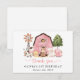 Agrega un toque personal a tu celebración de cumpleaños con estos artículos de fiesta elegantes y memorables. El diseño presenta animales de granja (vaca, caballo, oveja, cerdo, gallo, gallina) y granero rosa sobre fondo blanco.