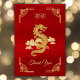 Tarjeta de agradecimiento elegante del Año Chino del Dragón Rojo y Dorado. Voltea la tarjeta y utiliza las herramientas de diseño para personalizar tu texto.
