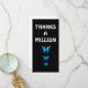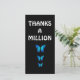 Presentamos el diseño de tarjetas de agradecimiento de mi personalizable, con la elegante inscripción "GRACIAS A UN MILLÓN" adornada con tres encantadoras mariposas azules en un fondo de negro elegante. Este versátil diseño le permite personalizar esta tarjeta con su propio logotipo de texto o foto, añadiendo un toque personal a sus expresiones de gratitud. Ideal para personas que valoran tanto el estilo como la sentimentalidad, esta tarjeta es perfecta para agradecer a amigos, familiares, colegas, profesores, clientes o a cualquiera que merezca apreciación. Ya sea para una ocasión especial o para un simple gesto de agradecimiento, esta tarjeta seguramente dejará una impresión duradera con su elegancia atemporal y encanto de personalizable.