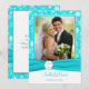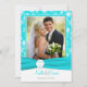 Esta tarjeta de agradecimiento con marco festivo digno de copos de nieve en turquesa y blanco tiene una cinta y medalla FAUX azul acuático. Coincide con la invitación de boda que se muestra a continuación. También hay una tarjeta de agradecimiento de estilo de tarjeta de saludo sin área de plantilla de foto que se muestra a continuación, si lo prefiere. Si necesita otros artículos coincidentes en este diseño, por favor envíe su solicitud a niteowlstudio@gmail.com.