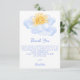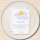 Esta tarjeta de agradecimiento de bebé de este lindo muchacho está decorada con un sol de color amarillo acuático, nubes y una tipografía azul elegante. Personalizable fácil. Acuarela original © Michele Davies.