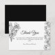 Agradece a tus invitados con estilo con esta tarjeta de agradecimiento de boda blanca que presenta elegante arte botánico lineal en negro. Su diseño limpio y simple le da un toque fresco y moderno que se ajusta a cualquier tema de boda elegante. Personaliza tu mensaje y crea un recuerdo considerado para tus seres queridos.