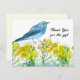 Gracias por el regalo decorado con un pájaro azul sobre flores silvestres de conejo amarillo bosquejado con tinta y pintado a mano con acuarela. En el reverso hay un tono suave de verde con espacio para escribir un mensaje. Encuentra stickers y tarjeta de cumpleaños a juego en mi tienda.