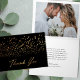 Esta carta de agradecimiento de boda, simple y elegante, presenta una bandada de pájaros en un falso Relieve metalizado dorado sobre un fondo negro puro. Elegante, elegante, moderno y único - fácil de personalizar para su día especial! En el interior se incluye una plantilla de foto, así como plantillas de texto. Simplemente elimine el mensaje si prefiere una nota escrita a mano.