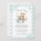 Tarjeta De Agradecimiento Avión Teddy Bear Pastel Gingham Primer Cumpleaños