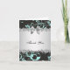 Elegante diseño de damasco negro y azul añil con flores plateadas y banda central de lazo en tarjetas de agradecimiento.
