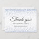 Tarjeta de agradecimiento azul con purpurina para graduación. Fácil de cambiar el texto.