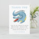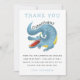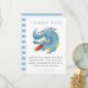 Tarjeta de agradecimiento de cumpleaños para niños con tema de caimán lindo que presenta una ilustración de un caimán azul con un sombrero de fiesta en la cabeza. El texto dice "chomp chomp". El texto predeterminado agradece a los invitados por la celebración y el regalo. Personalice este producto agregando su nombre en la parte inferior. Ideal para la fiesta de cumpleaños de un niño en verano.