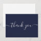 Tarjeta de agradecimiento de script azul marino elegante moderno simple. Puedes personalizar con tu propio mensaje de agradecimiento en el reverso o si prefieres agregar tu propio mensaje escrito a mano simplemente elimina el texto. ¡Una forma perfecta de decir gracias! Diseñado por Thisisnotme©